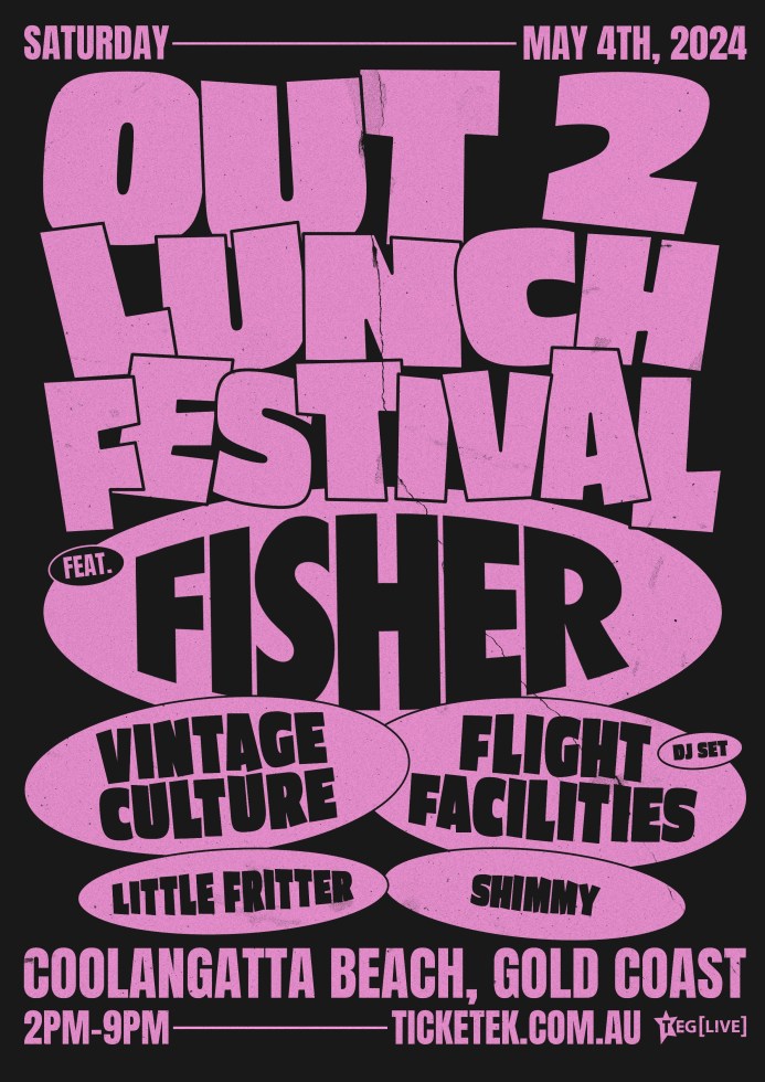 In an Australian first, TEG Live is proud to present the inaugural OUT 2 LUNCH FESTIVAL, with the event boasting a two-hour set from FISHER himself, as well as a huge international and local line-up, including performances from Vintage Culture, Flight Facilities, Little Fritter and Shimmy, with plenty more surprises in store for this unforgettable event.