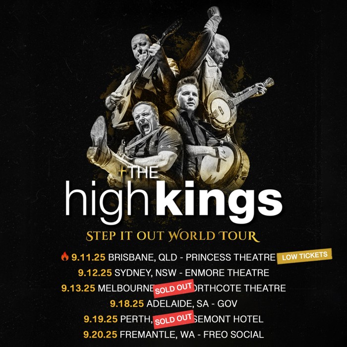IRISH FOLK GROUP ‘THE HIGH KINGS’ SHARE NEW SINGLE โTHE ROCKY ROAD TO DUBLIN-THE CELTIC REMIXโ AND ANNOUNCE AUSTRALIAN TOUR IN SEPTEMBERย